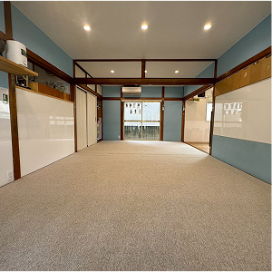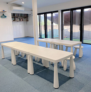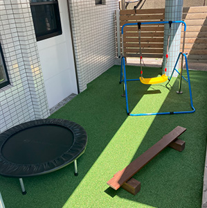 開所時に新築で療育のために設計・建設した事業所です。メインの療育室のほか個別や小集団の療育を行う個室やL字の広いテラスを活用して療育を行っております。