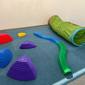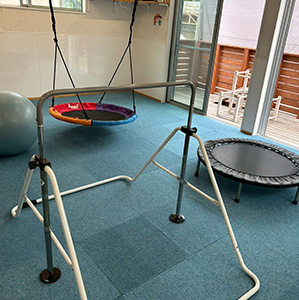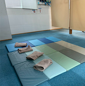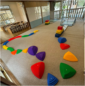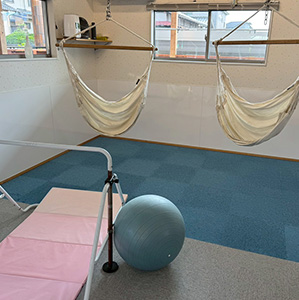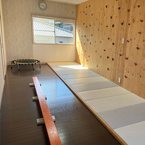 室内運動の環境も充実しており、のびのびと身体を動かせます。小集団での活動を通して座って話を聞くことや、みんなと一緒に遊ぶこと、集団生活での困りごとを、丁寧に関わりながら「お友だちとの生活の楽しさ」へと繋げていきます。