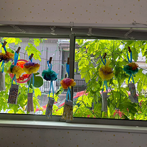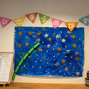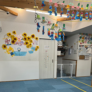 主に製作活動、感触遊び、室内運動、戸外活動を中心に月に1回の食育(クッキング)や個別訓練等も実施しております。プールや夏祭り、ハロウィンやクリスマス、お正月など季節に応じてイベントも行っております。