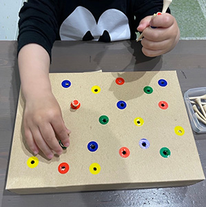 〇制作活動は、発達に合わせた内容にし、指先への刺激や、道具の使い方の獲得へアプローチします。また、少人数で行うことで、それぞれのお子様の困り感のキャッチや丁寧な支援を心掛けています。