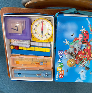 給食ごっこ、掃除の練習、ランドセルの準備など、小学校ごっこを通して小学校生活を疑似体験板書の力、聞いて行動する力を育みます。