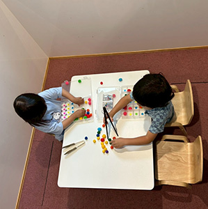 活動の中では、おおよそ2~6個の課題を行っております。また、職員とお子さんの1:1だけでなく、お子さん2~3人での個別も行っております。 つまづきを見つけ、苦手なことにも遊びを通して楽しみながら挑戦し、個性や強みを伸ばせるよう支援しています。小集団では、お子さん4~5人で様々な活動も行っています。大きな集団でのお困りごとがあるお子様は、まずは小集団でお友達との関わり方を身に着けることができます。少しでも”できた”という達成感を味わい、お子様や保護者様が自信を持って笑顔で日々を過ごせるよう職員一同支援して参ります。