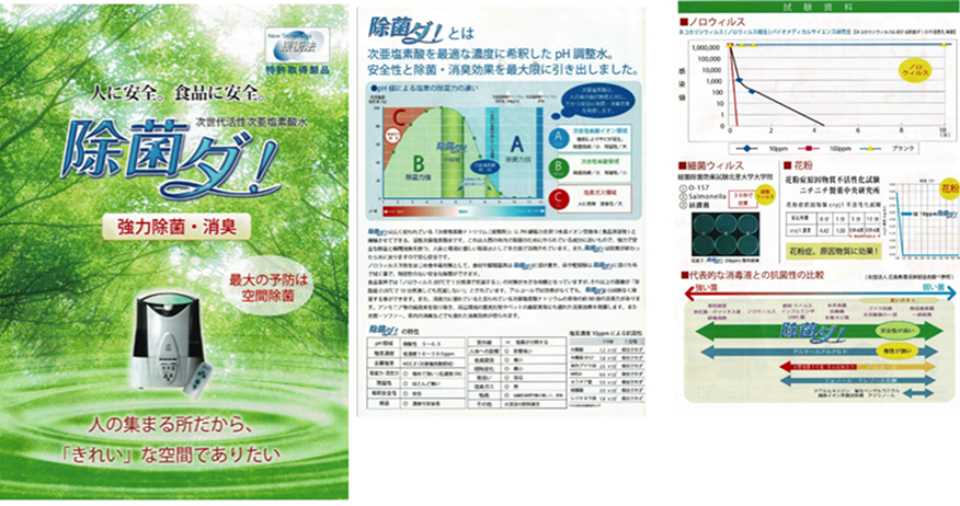 感染症等への対策として、飲用証明を取得した人体に無害な次亜塩素酸水「除菌ダ!」を使用し日々のお子様の健康と安全の確保に努めております。